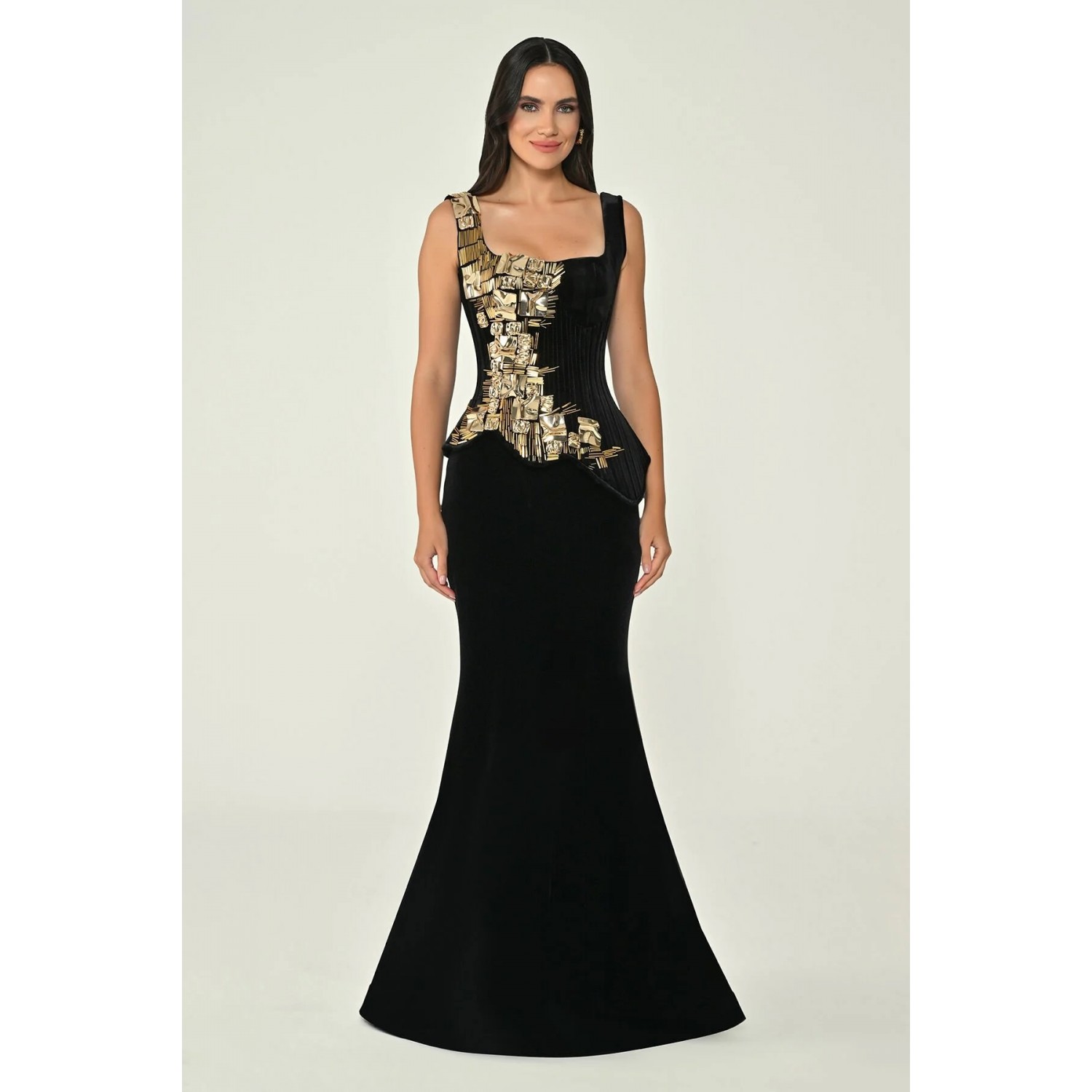 her adımda sofistike ve dinamik bir siluet oluşturuyor. Hafif kumaş dokusu, elbiseye zarif bir hareketlilik katarak özel davetlerde çarpıcı bir şıklık sunuyor.